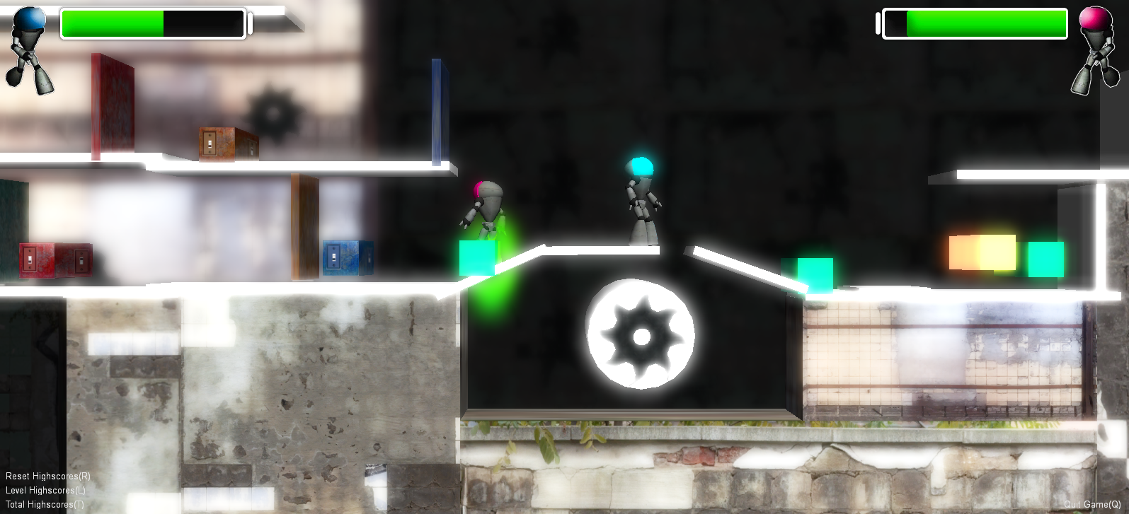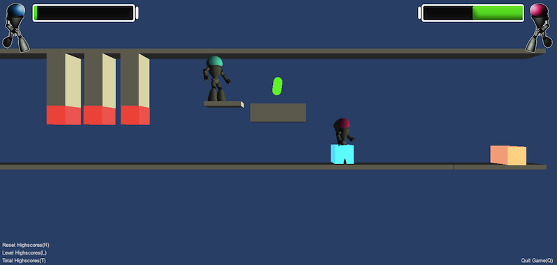 This is a two-player co-operative platform puzzle game, developed during the Nordic Game Jam 2012. Each player is represented as a robot, who uses energy for any of their movement actions sich as: